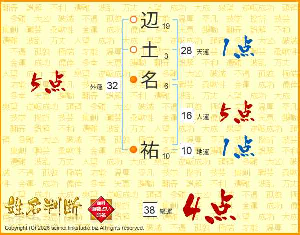 辺土名祐さんの総運は38画の4点!