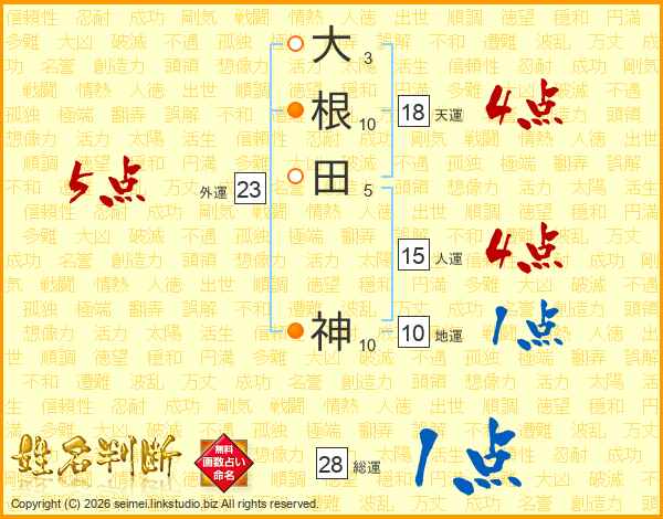 大根田神さんの総運は28画の1点!