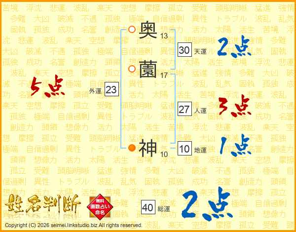 奥薗神さんの天運は30画の2点!