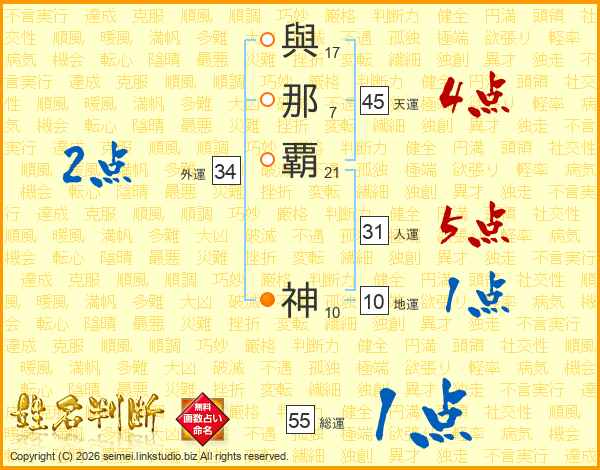 與那覇神さんの天運は45画の4点!