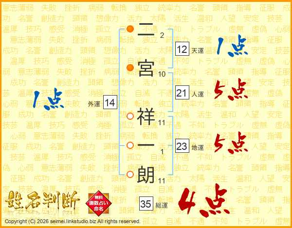 二宮祥一朗さんの人運は21画の5点!