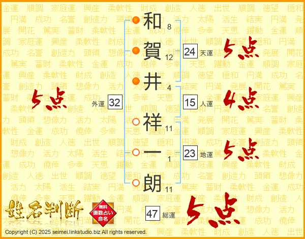 和(8画)賀(12画)井(4画) 祥(11画)一(1画)朗(11画)