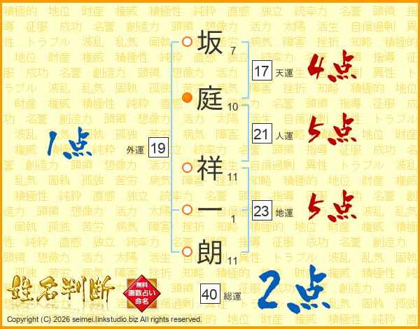 坂庭祥一朗さんの総運は40画の2点!