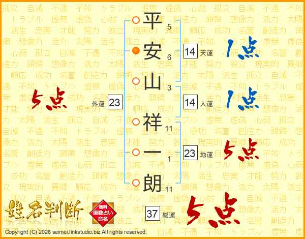 平(5画)安(6画)山(3画) 祥(11画)一(1画)朗(11画)