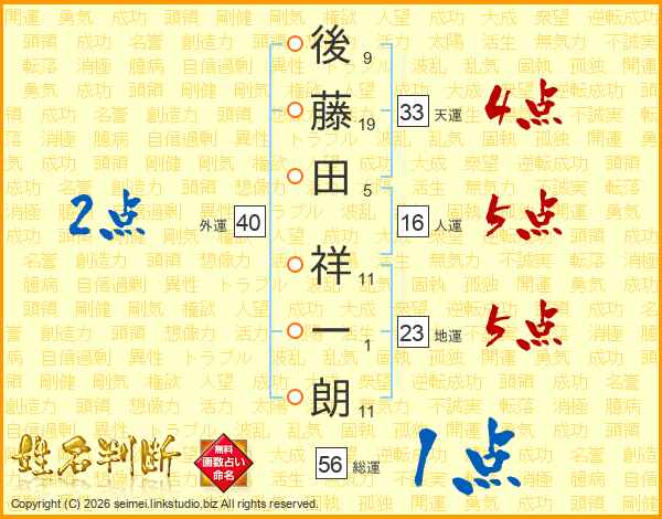 後(9画)藤(19画)田(5画) 祥(11画)一(1画)朗(11画)