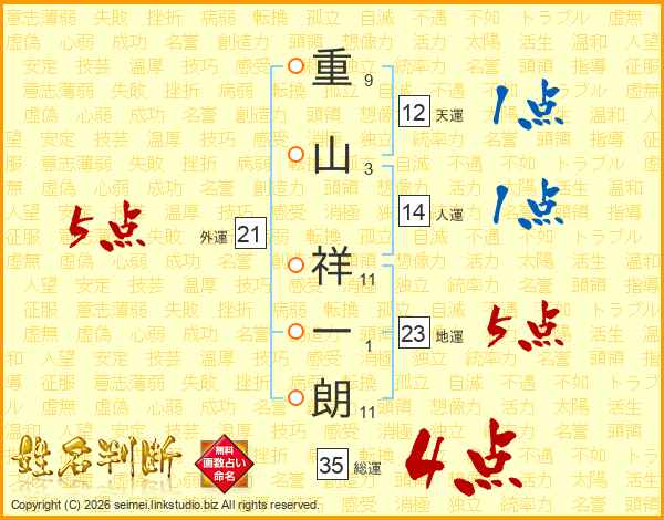 重山祥一朗さんの総運は35画の4点!