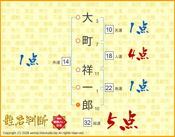 大(3画)町(7画) 祥(11画)一(1画)郎(10画)