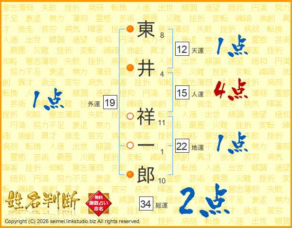 東(8画)井(4画) 祥(11画)一(1画)郎(10画)