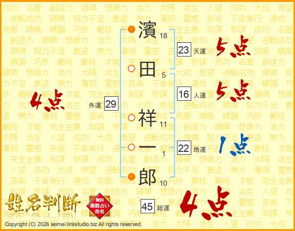 濱田祥一郎さんの総運は45画の4点!