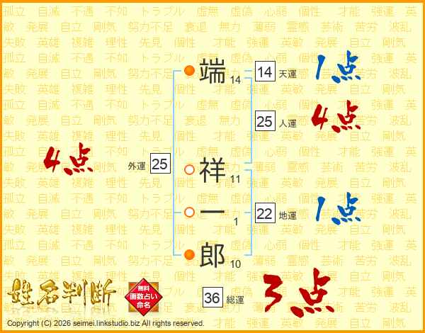 端祥一郎さんの総運は36画の3点!