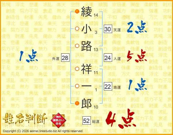 綾小路祥一郎さんの総運は52画の4点!