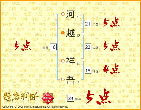 河越祥吾さんの総運は39画の5点!