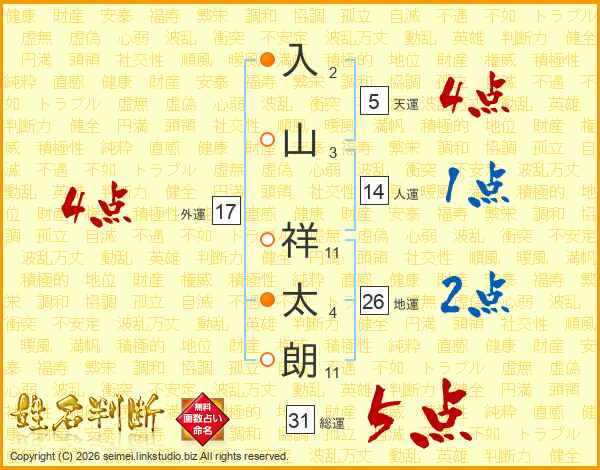入山祥太朗さんの総運は31画の5点!