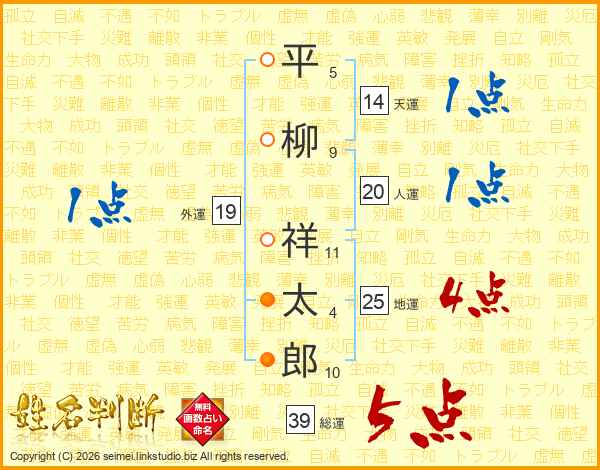 平柳祥太郎さんの総運は39画の5点!