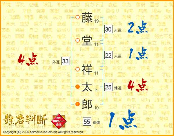 藤堂祥太郎さんの外運は33画の4点!