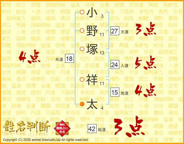小野塚祥太さんの天運は27画の3点!