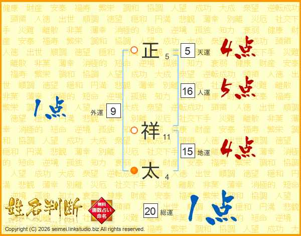 正(5画) 祥(11画)太(4画)