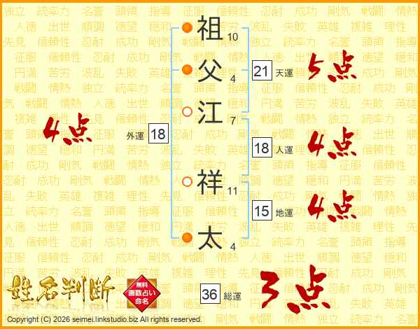 祖(10画)父(4画)江(7画) 祥(11画)太(4画)