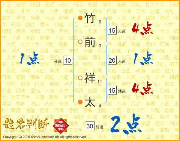竹前祥太さんの総運は30画の2点!