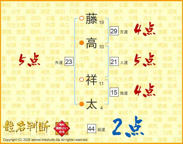 藤高祥太さんの総運は44画の2点!