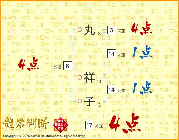 丸(3画) 祥(11画)子(3画)