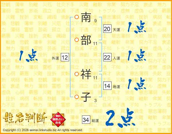 南部祥子さんの総運は34画の2点!
