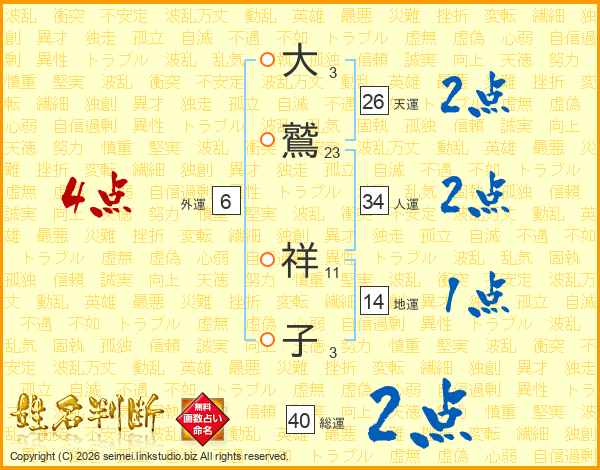 大鷲祥子さんの総運は40画の2点!