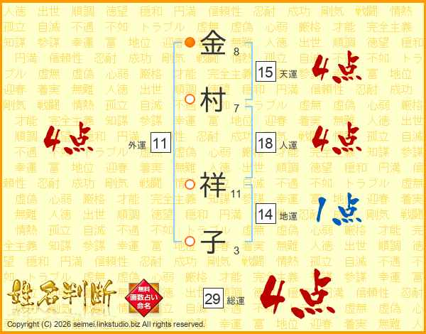金村祥子さんの総運は29画の4点!