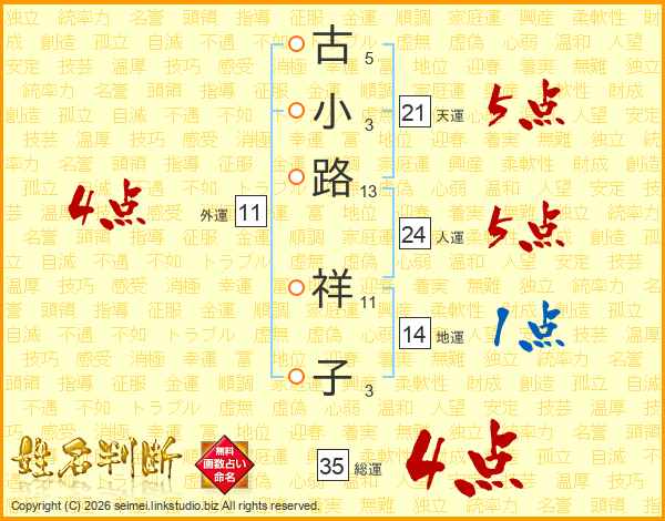古(5画)小(3画)路(13画) 祥(11画)子(3画)