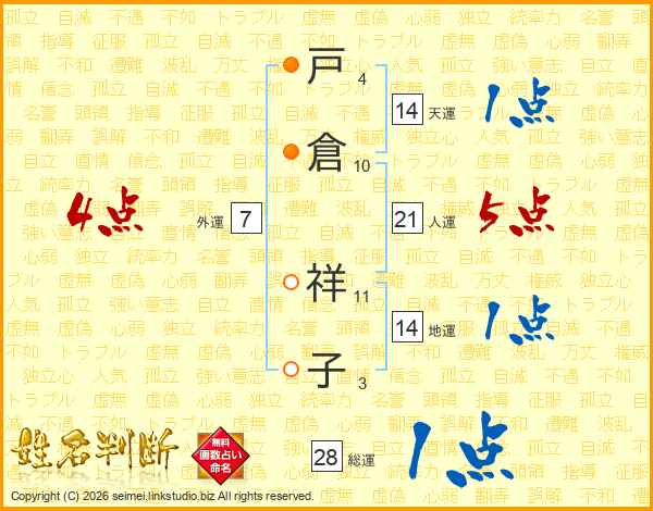 戸(4画)倉(10画) 祥(11画)子(3画)