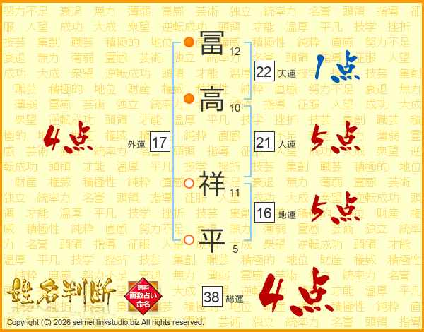 冨高祥平さんの人運は21画の5点!