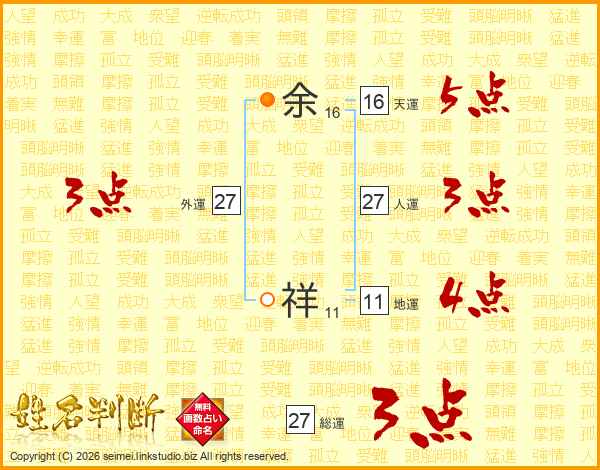 余祥さんの人運は27画の3点!