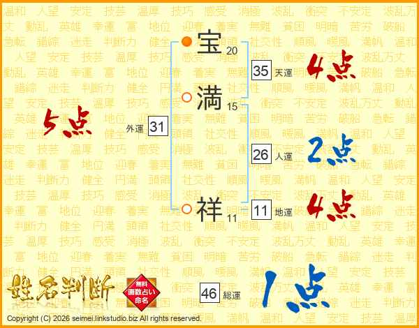 宝(20画)満(15画) 祥(11画)