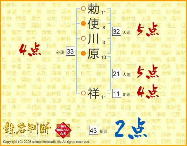 勅(11画)使(8画)川(3画)原(10画) 祥(11画)