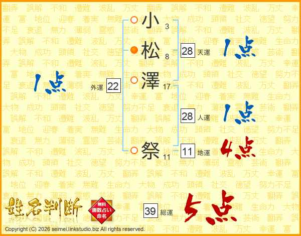 小松澤祭さんの総運は39画の5点!