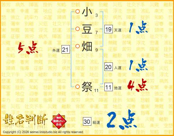 小豆畑祭さんの総運は30画の2点!
