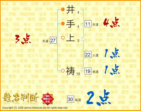 井手上祷さんの総運は30画の2点!