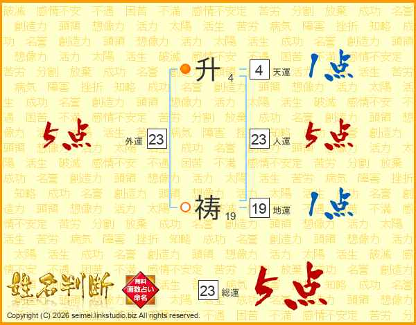 升祷さんの総運は23画の5点!