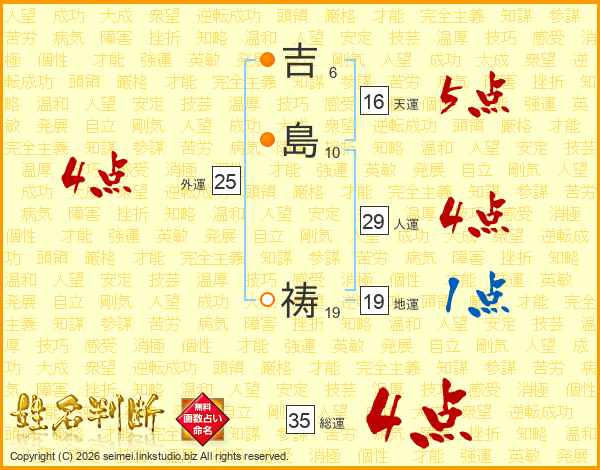 吉島祷さんの総運は35画の4点!