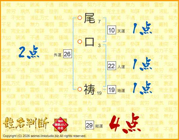 尾口祷さんの総運は29画の4点!