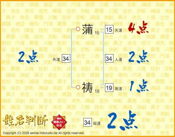 蒲祷さんの総運は34画の2点!