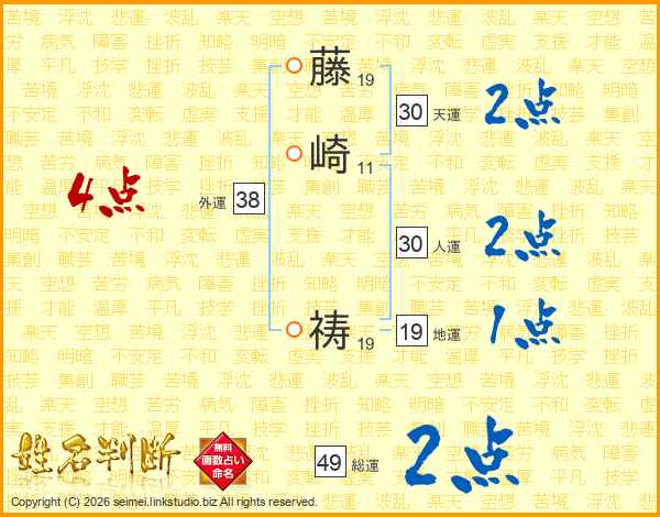 藤崎祷さんの天運は30画の2点!