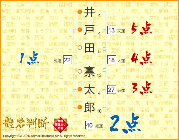 井戸田禀太郎さんの総運は40画の2点!