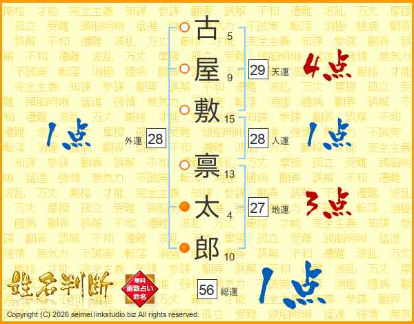 古屋敷禀太郎さんの総運は56画の1点!