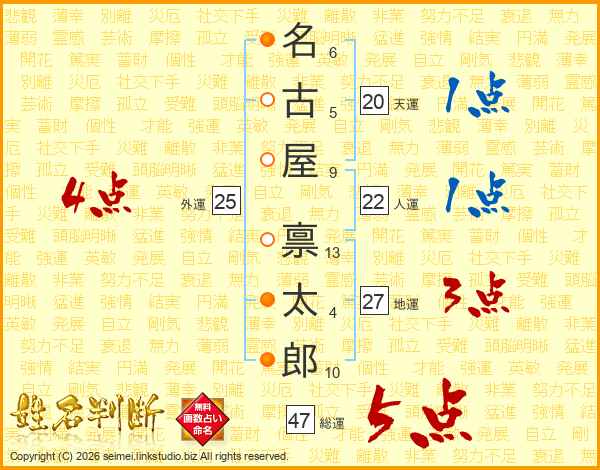名古屋禀太郎さんの総運は47画の5点!