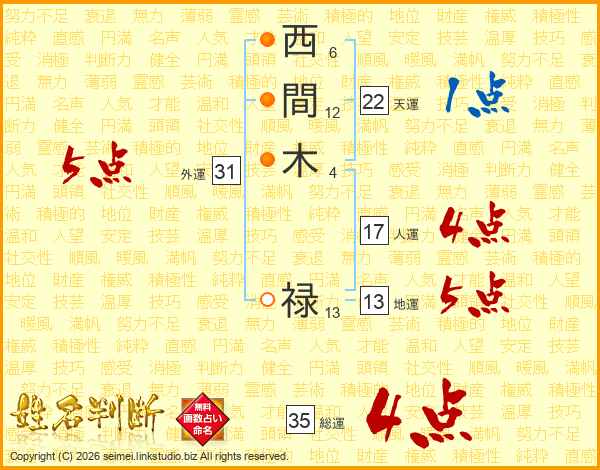 西間木禄さんの総運は35画の4点!
