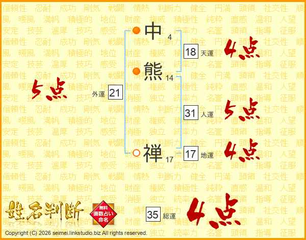 中熊禅さんの総運は35画の4点!