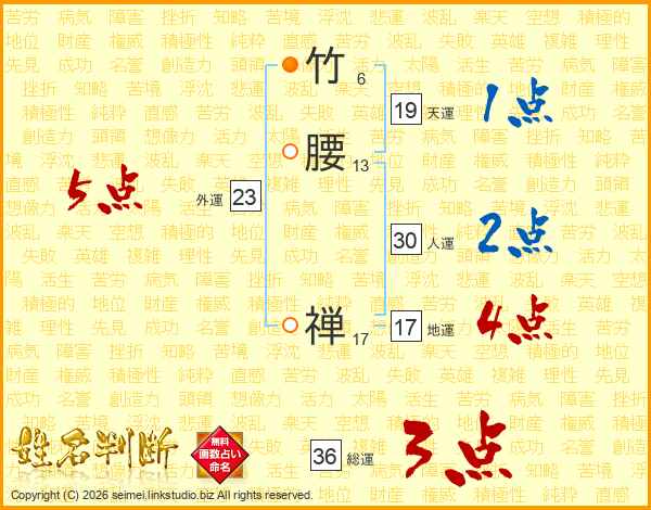 竹腰禅さんの総運は36画の3点!