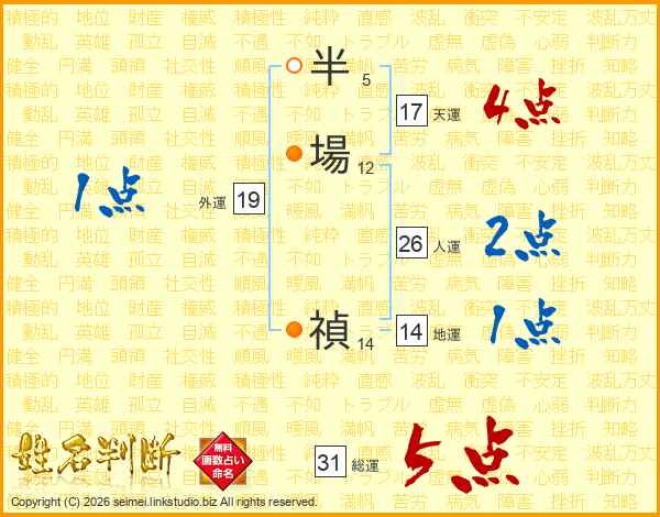 半場禎さんの総運は31画の5点!