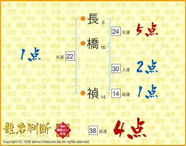 長橋禎さんの総運は38画の4点!